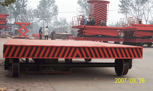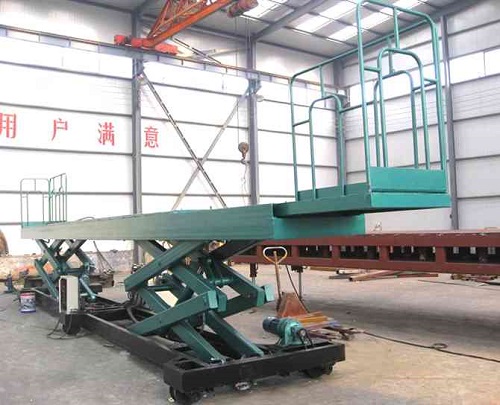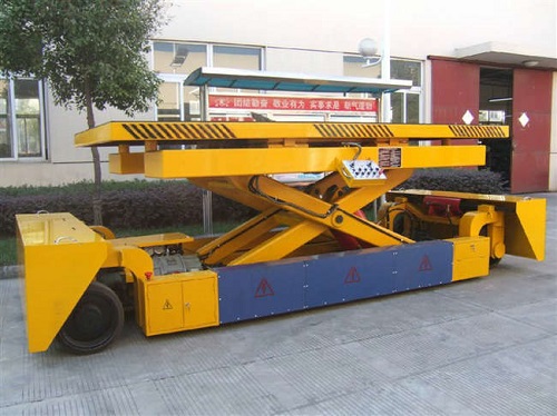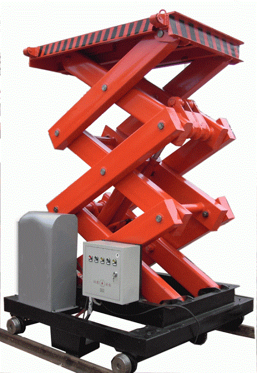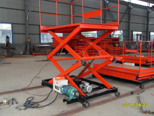导轨移动升降机适用于高低位流水线货物的传送,或者是两条流水线之间的货物传送,并可用于立体车库及自动立体仓库中搭载和存取货物(在某种程度可取代堆垛机)。它的剪叉机械结构,使升降台起升有较高的稳定性,宽大的作业平台和较高的承载能力,使高空作业范围更大、并适合多人同时作业。行走动力可采用220V或380V电源电机,特殊环境也可采用防爆泵站及防爆电器。 载重1—100吨。采用意大利和国产液压泵站,台面使花纹钢板。它使高空作业效率更高,安全更保障。