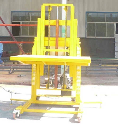 移动叉车式升降机其工作原理是通过动力源将液压油打入油缸使其拉动链条带动台面上升的一种液压升降设备。产品的台面1.5*2米,净升高度3.5米,载重1500公斤。主体自身高度1.5米。台面自身高度0.2米。升降动力采用,手动液压升降动力和三相电源动力。