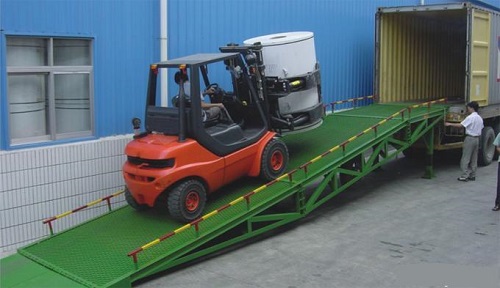 移动式登车桥是与叉车配合使用的货物装卸辅助设备,可根据汽车车厢的高低调节高度,叉车可以直接通过本设备驶入车厢内部进行货物的批量装卸,仅需单人作业,即可实现货物的快速装卸。它使企业减少大量劳力,提高工作效率,获取更大经济效益。